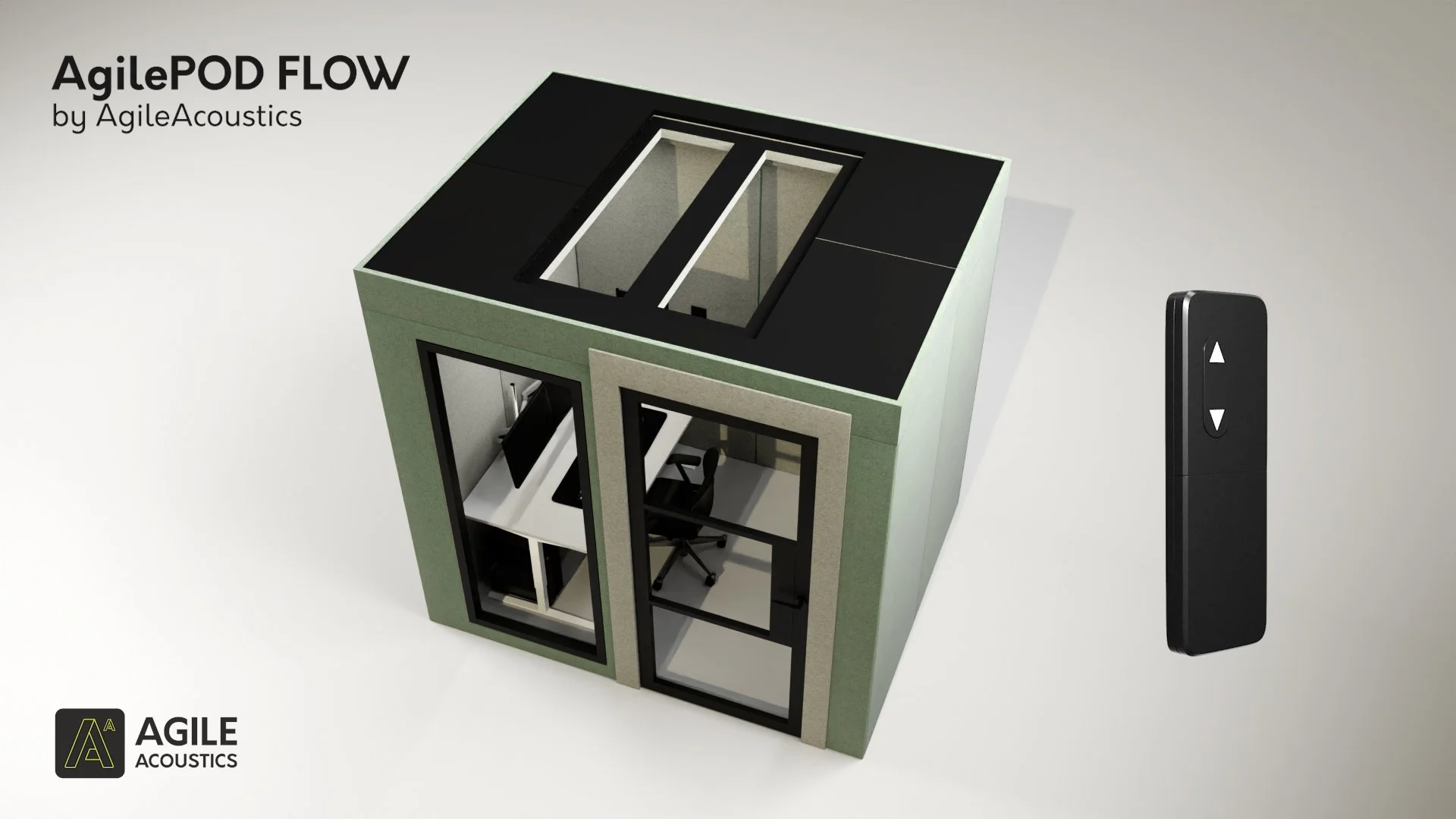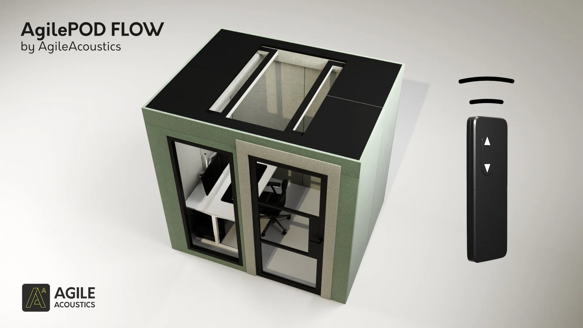 It works exactly like a standard AgilePOD when closed — with integrated fans providing continuous airflow — with the added benefit of physical ventilation when users want it.