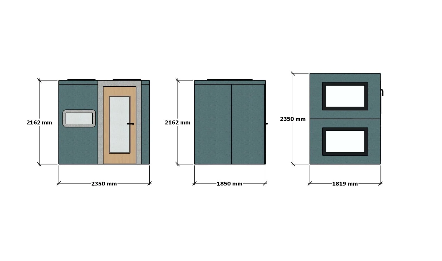 Dimensions: 2350w x 1850d x 2162mm h