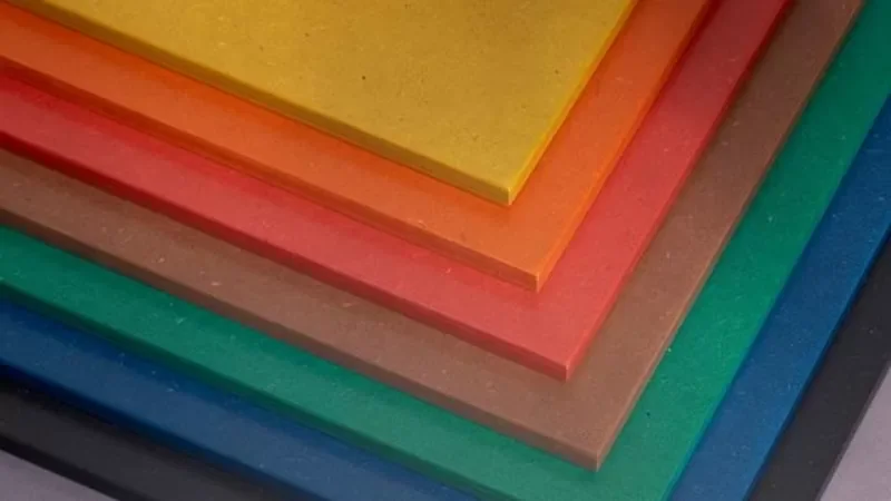 Valchromat starts life as wood fibres sourced from forest thinning and waste wood — materials that might otherwise go to landfill. Each fibre is individually coloured using organic dyes, then bonded together with a non-toxic resin, creating a through-coloured panel that’s dense, durable and effortlessly expressive.