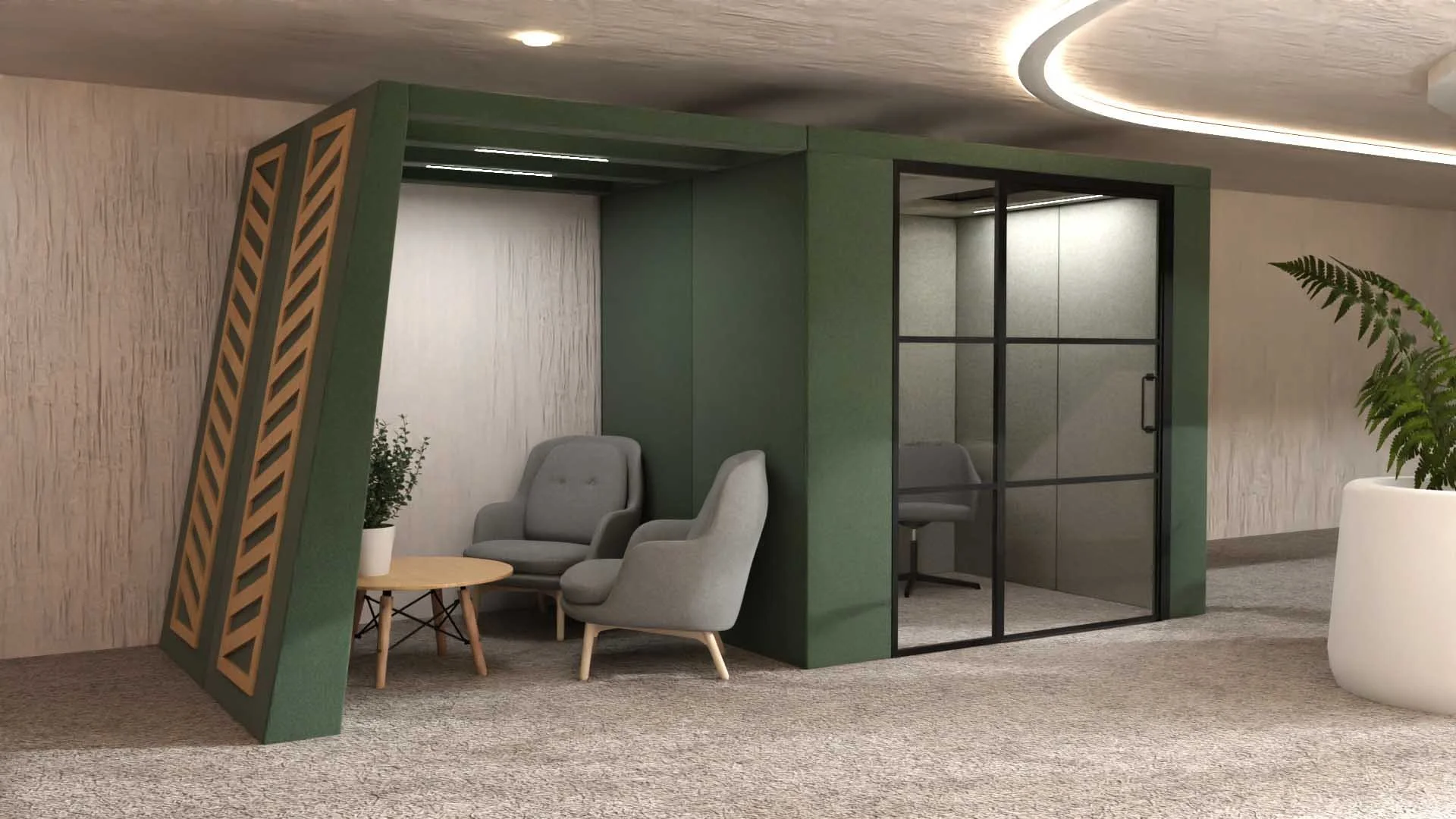 External surfaces absorb ambient noise, creating relaxed breakout and focused zones—perfect for both solo work and group use.