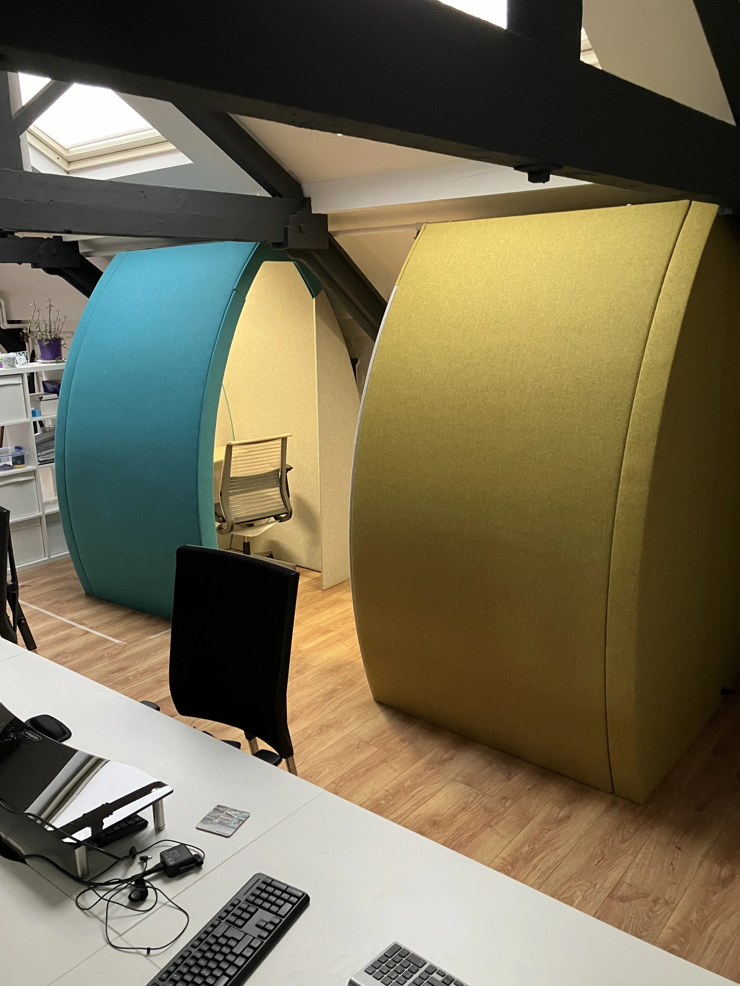Integration with Office Layout: The pods were strategically placed to complement the office’s aesthetic and functional layout, ensuring they did not impede collaborative workspaces while providing the necessary quiet zones.